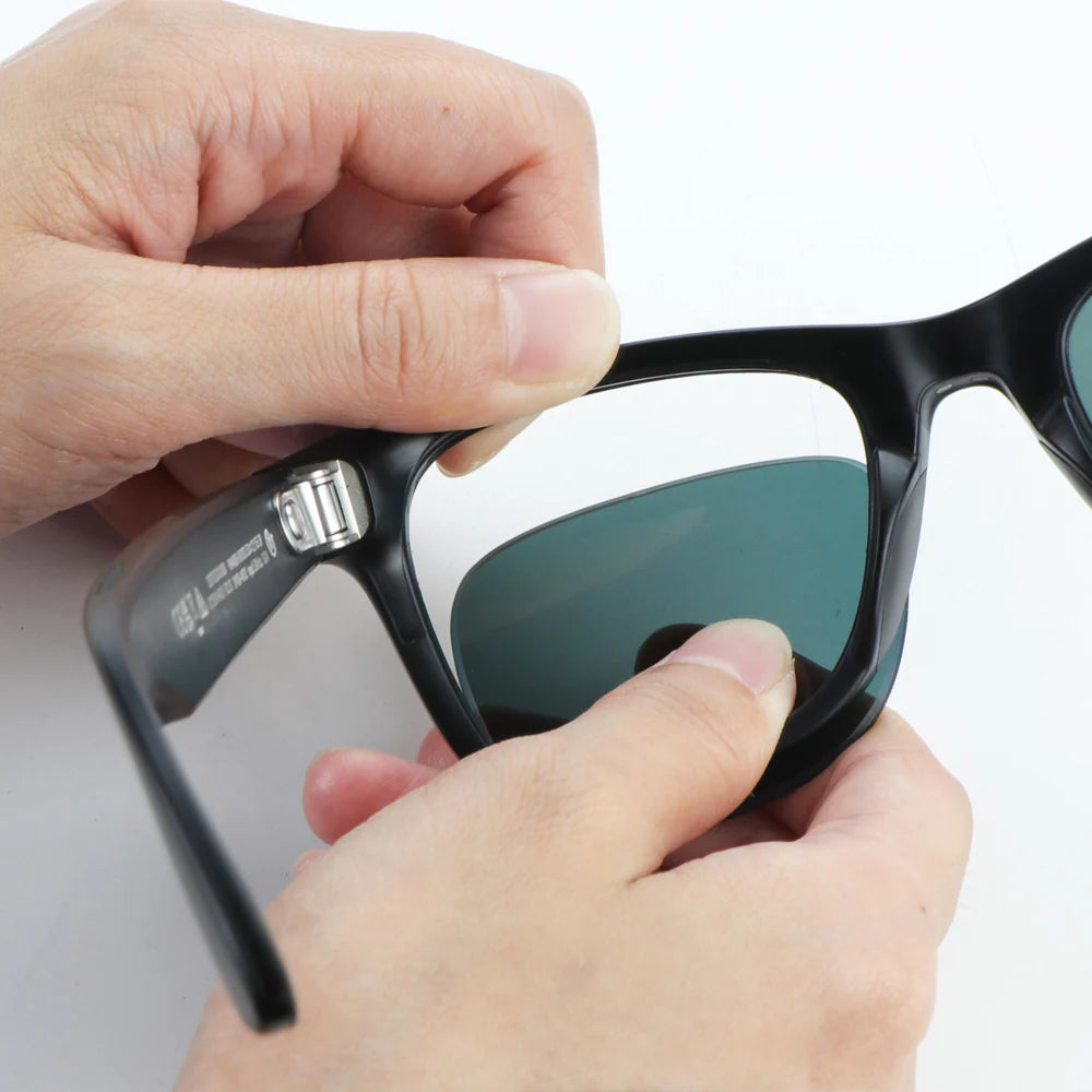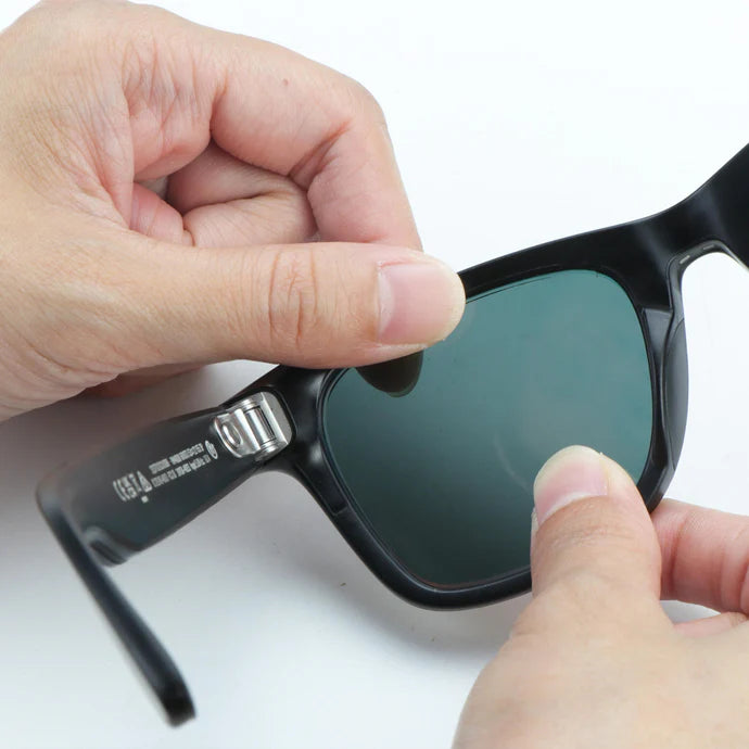 To install, begin by fitting the top nose-edge of the LifeArt lens into the groove. Then, firmly press the rest of the lens into place with your thumbs, working around the frame until it's fully and evenly seated.